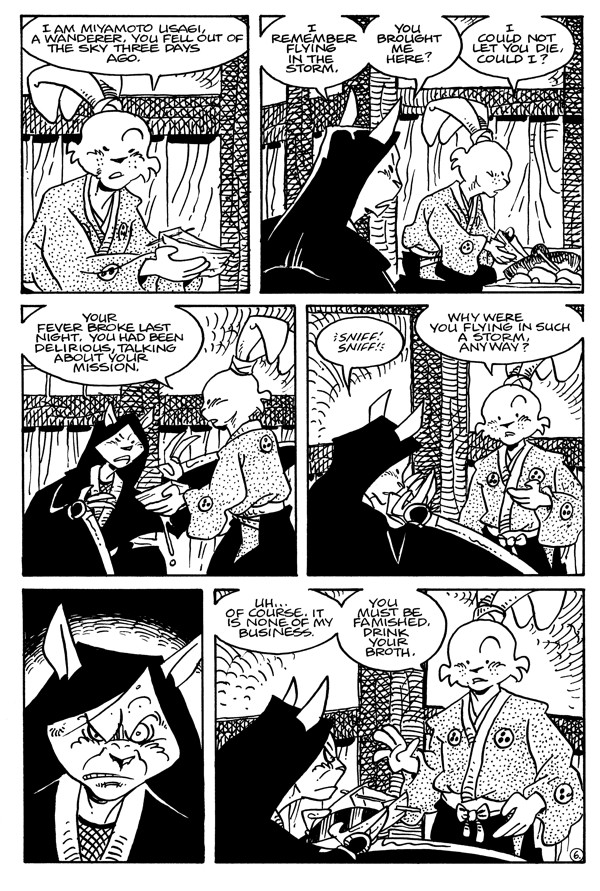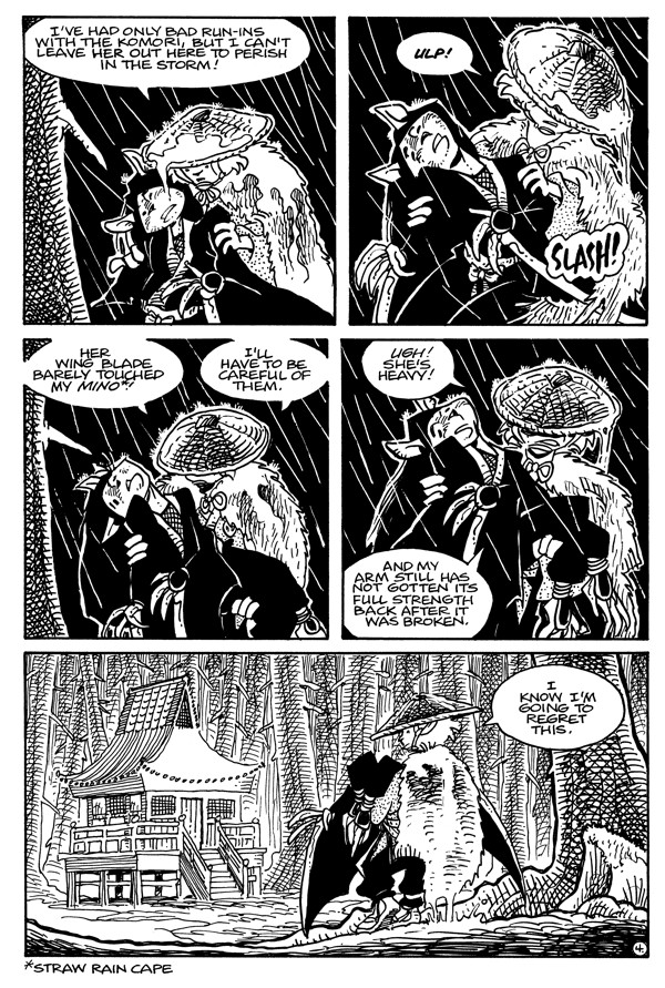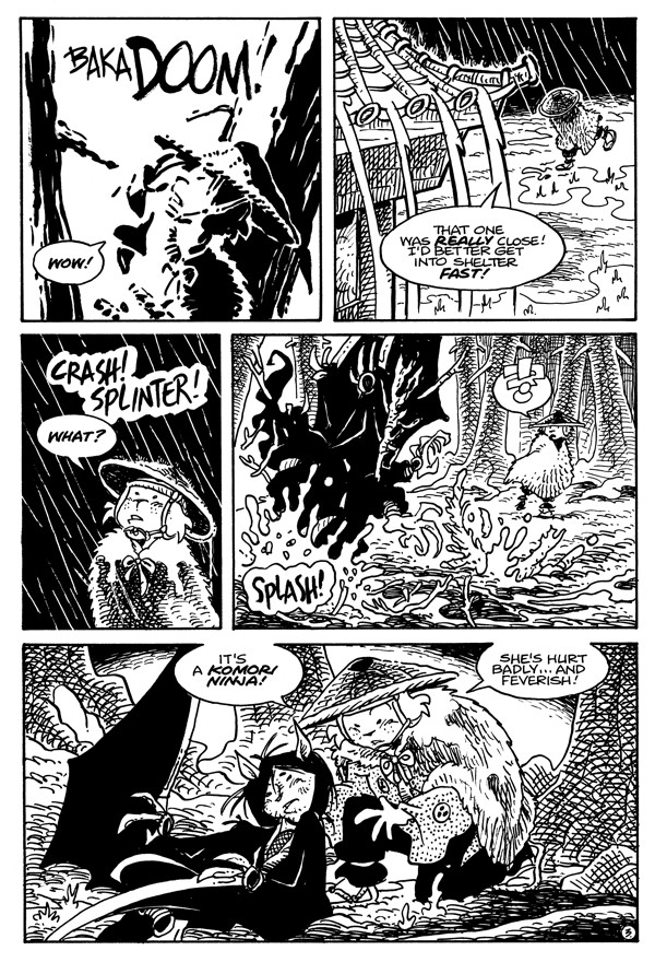 When Usagiprotects a Komori ninja during a raging storm, he never guesses that he will cross paths with her again . . . but many months later, fate places them on opposite sides of a trade agreement gone wrong. Usagi must protect the merchant, while the ninja has been hired to stop him. With the negotiation on the line, which side will emerge victorious?