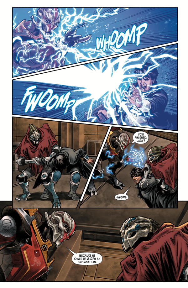 Following a lead to the lawless space station Omega, Tiran Kandros is closer than ever to uncovering the Andromeda Initiatives biggest secret. Unfortunately, so is the deadly Agent Zeta! In a story that ties in to the Mass Effect: Andromeda game, writers John Dombrow and Jeremy Barlow and artist Gabriel Guzman team up to create the next exciting chapter of the Mass Effect comics series!