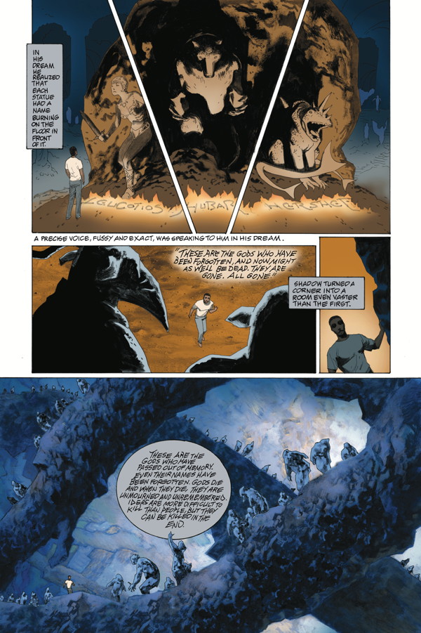 After a bizarre encounter with his dead wife, Shadow Moon is eager to flee Eagle Point and put the past behind him. In Chicago, he is introduced to an eccentric family who seem to be a key part of Mr. Wednesday's mysterious plans.