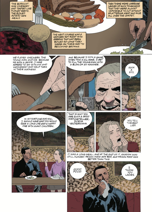 During an overnight stay at their home, Shadow awakens to a visit from the third of the Zorya sisters: Zorya Polunochnaya. The Midnight Sister’s advice is ethereal and strange, yet vital . . . and Shadow can’t seem to separate reality from the dream world.