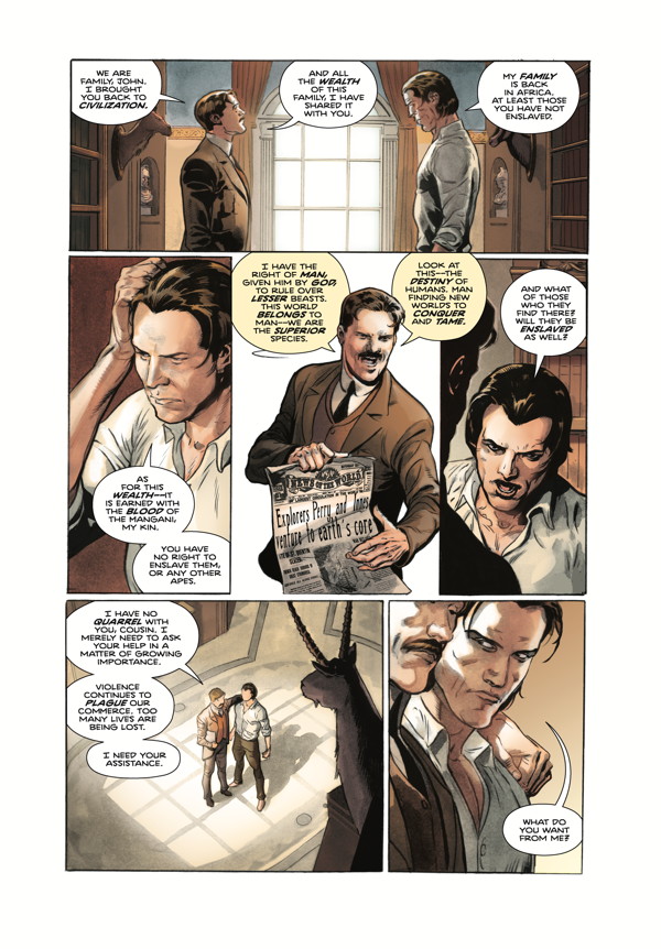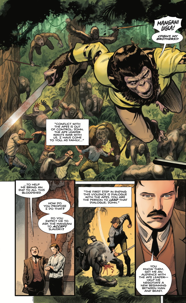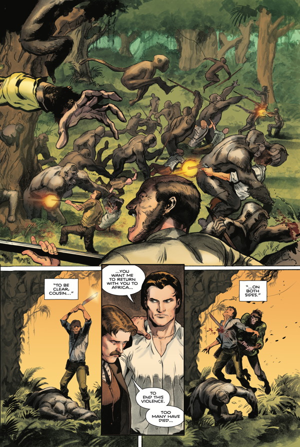 Early twentieth-century British colonialists have rebuilt the slave trade around the intelligent apes that raised Tarzan in the jungles of Africa. Now Tarzan and his adoptive brother Caesar fight back to free the apes—but discover that man and ape will have to unite if the surface world is to survive.