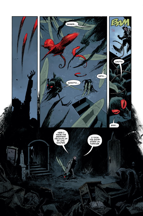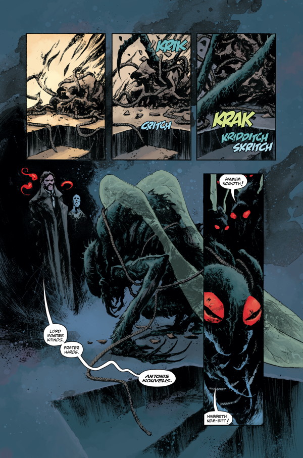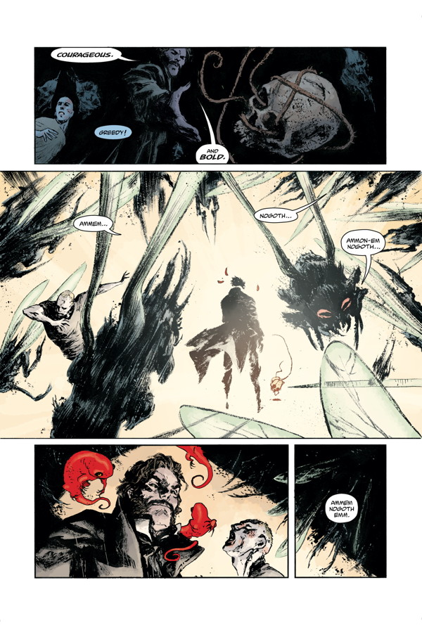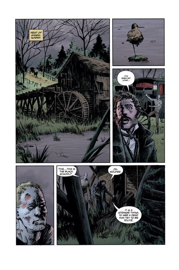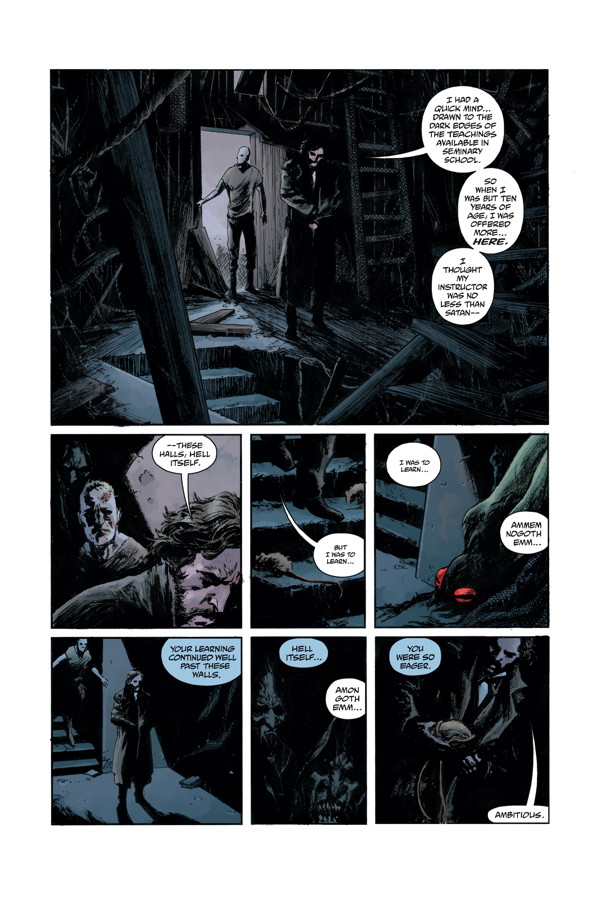 Our villain reaches his goal—the mythic Black School, where his training began over two hundred years ago. Here he’ll find the answers Abe Sapien himself has sought for years. Strobl may also find the shortcut he needs to restore his place at the end of the world: tyrannizing mankind at the right hand of the devil.