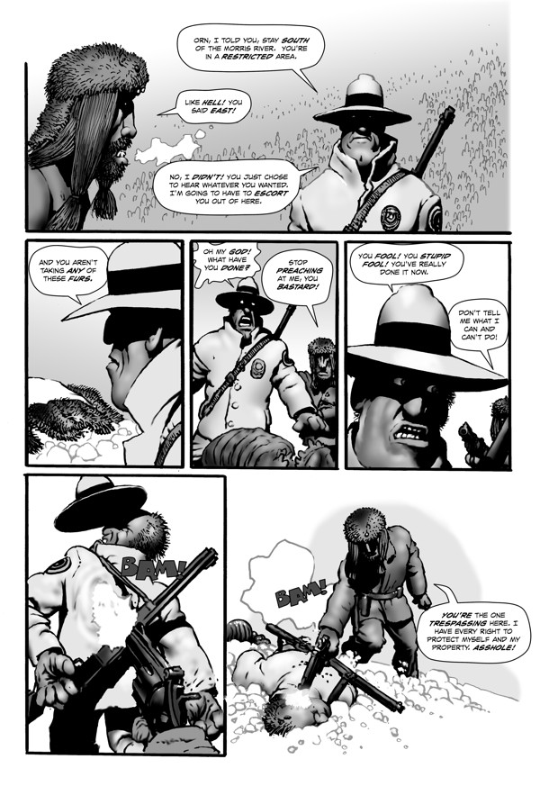 "Theres also something about Corben's distinctive artwork thats inherently unnerving, from the grotesquely exaggerated facial features to his tense, claustrophobic panels and layouts."-Big Comic Page