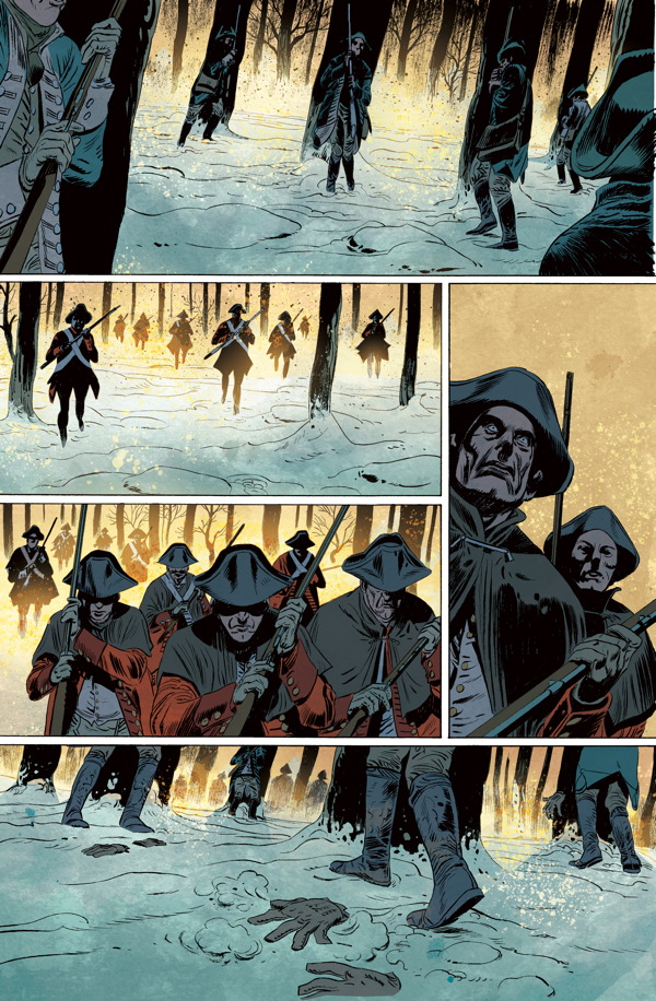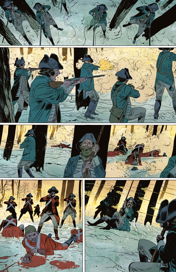 Following a disastrous campaign in Quebec, two members of the Green Mountain Boys militia escort a column of sick and wounded south through the snow, fighting off British sharpshooters every inch of the way. Meanwhile, in Philadelphia, Seth Warner runs afoul of John Adams, who is reluctant to support the militia.