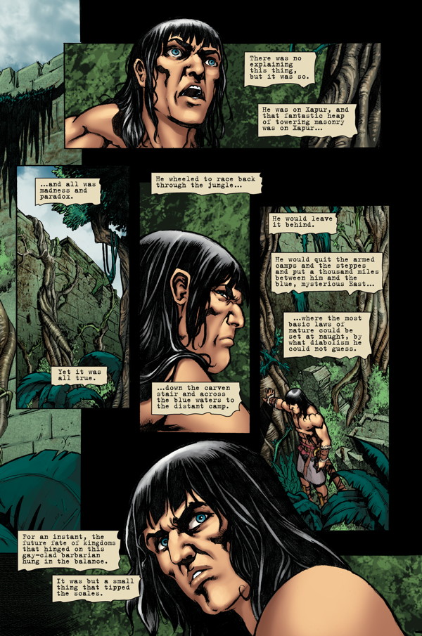 The sinister Jehungir Agha enlists the bewitching Octavia to lure Conan to the remote island of Xapur, where Aghas murderous trap is to be sprung. But other malign forces are at work in Xapurs jungle-choked ruins . . . and the Devil in Iron lurks in the shadows!