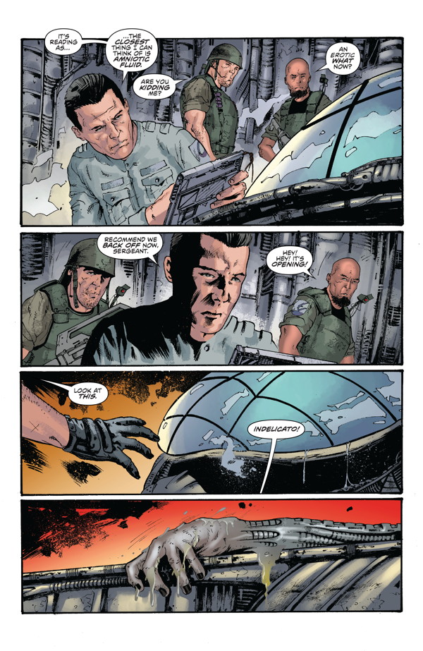 Colonial Marines have commandeered a mysterious alien ship—wresting it from the savage Predators who also wanted it. But now the owner of the vessel has awakened, and the marines find themselves trapped in space with an angry god!