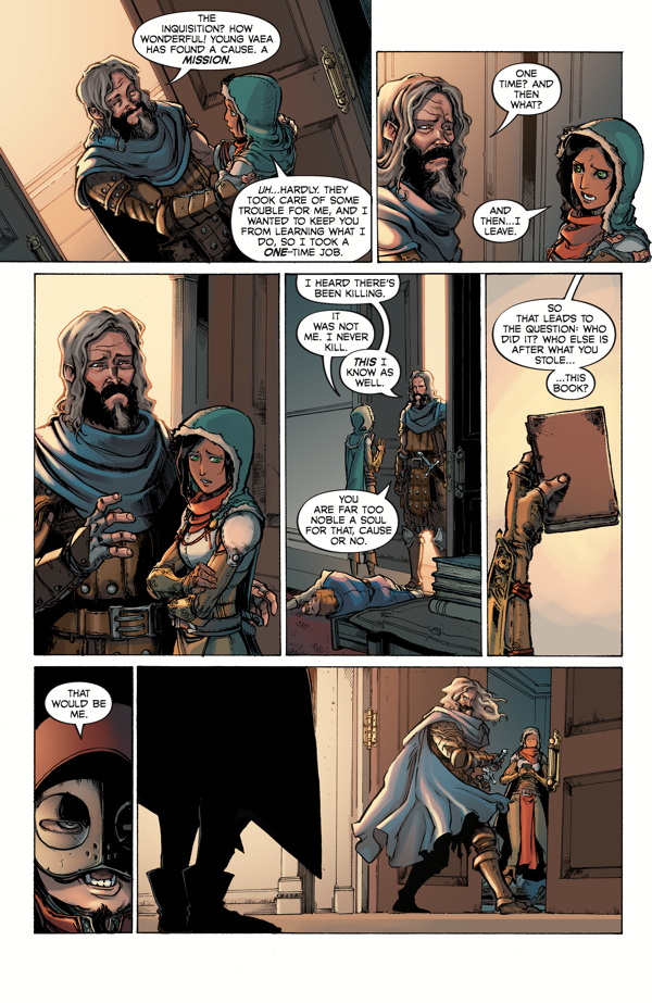 As the truth about Vaea's proclivities is revealed, she steels herself for Ser Aaron's judgment. Before they're able to discuss much, Marquette arrives with his men and a vicious fight breaks out--the result of which will determine both Vaea's future and that of freedom in Thedas.