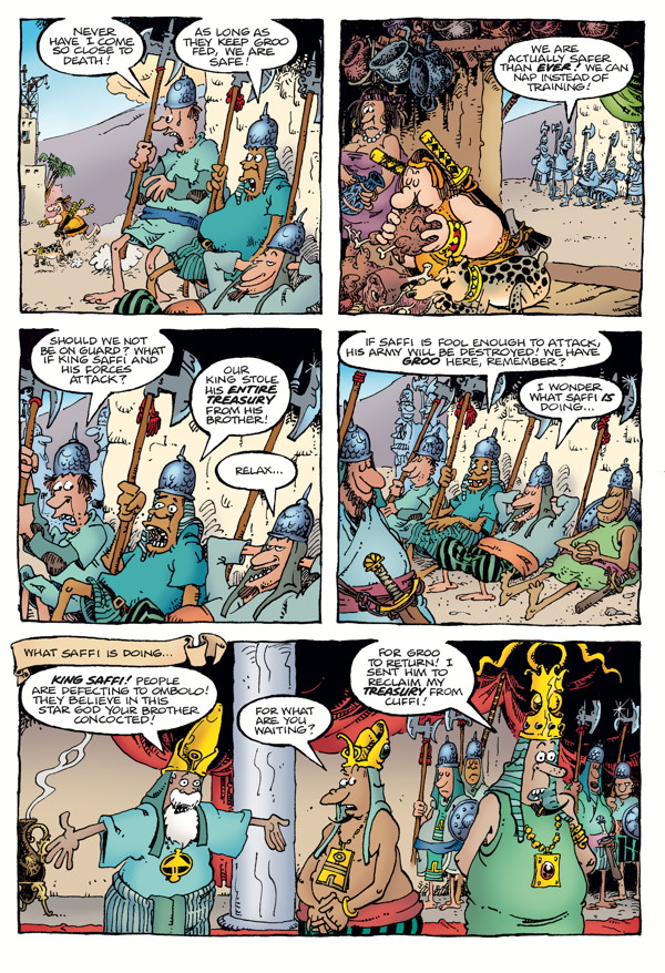 It’s the last issue of a four-issue Groo miniseries, and we all know what that leads to: the first issue (coming soon) of the next four-issue Groo miniseries. In this epic conclusion (not to be confused with the next epic conclusion or others that follow), Groo finds himself in the midst of a battle twixt the awesome, all-powerful gods and maybe a few lesser ones.