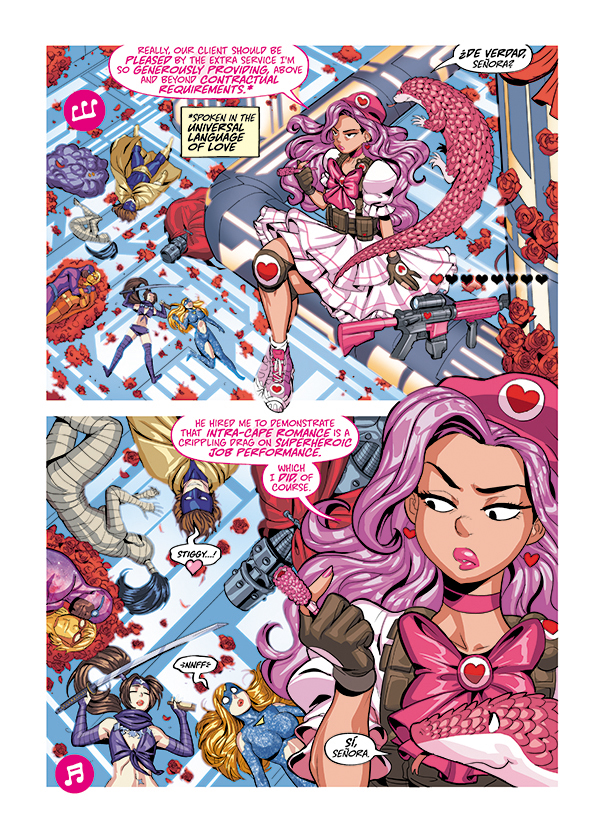 As the very fabric of reality itself unravels around them in a frighteningly literal storm of burning passion, can a desperate Empowered and Ninjette stop the embittered, disillusioned, and out-of-control Soldier of Love from using her supercharged magical-girl powers to eradicate the entire concept of love from their city?