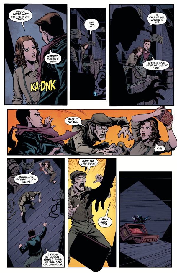 Aboard a ship in the middle of the ocean, Angel has not succeeded in avoiding his past self, Angelus. He must escape Angelus, keep Fred safe, and also determine what must be done with the jewel-like beetle that has ties to the future. When the beetle turns out to be something stranger than anyone could have imagined, Angel’s focus turns to survival rather than saving the future . . .