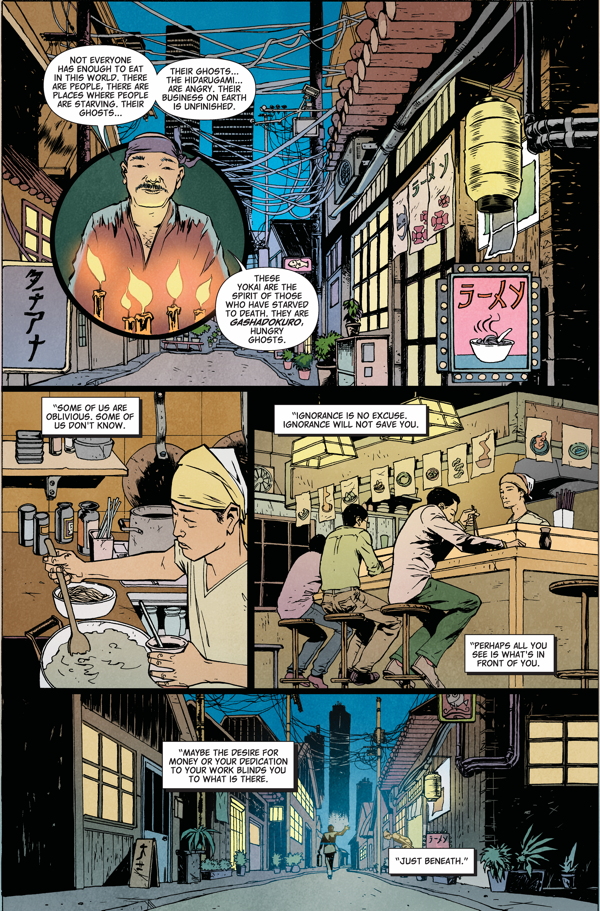 Hungry Ghosts is cooked up by the infamous author and chef, Anthony Bourdain (Kitchen Confidential, Emmy-Award winning TV star of Parts Unknown) and acclaimed novelist Joel Rose (Kill, Kill, Faster, Faster, back again from their New York Times #1 best seller, Get Jiro!). Joining them this issue are stellar artists Alberto Ponticelli and Vanesa Del Rey, with amazing color by Jose Villarrubia, and a drop-dead cover by Paul Pope