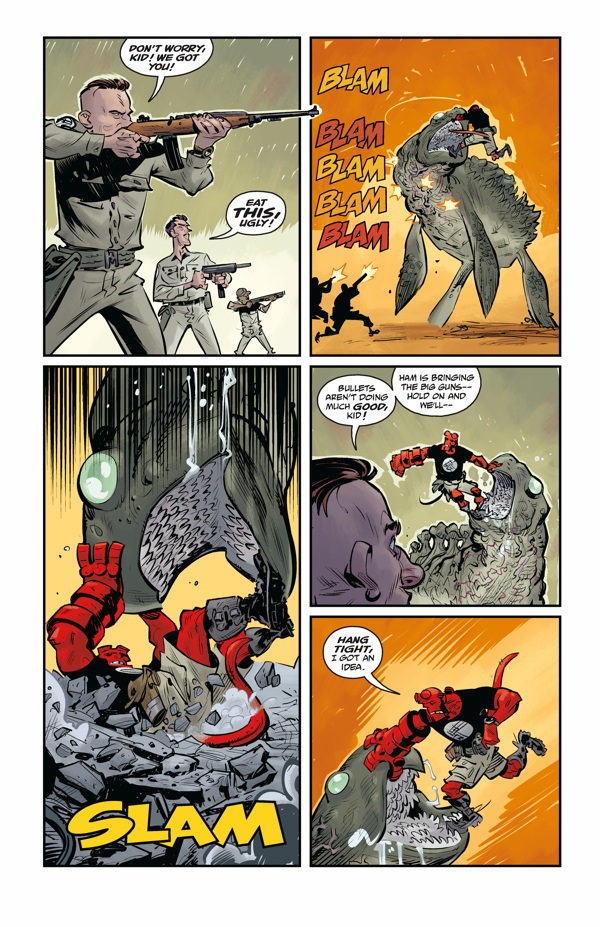 The mystery in the tropics heats up when a monster attacks, but the creature may have ties to a secret weapon at the center of an international conflict. Elsewhere, Bruttenholm's own investigation suggests that the B.P.R.D. is embroiled in something much larger than he thought.
