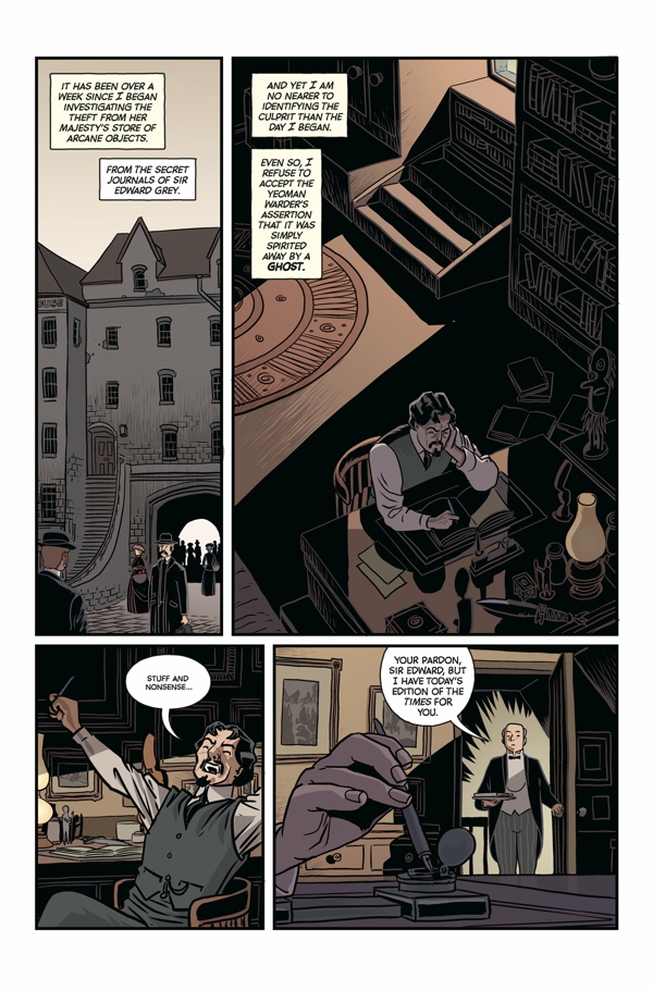 A series of occult events mystifies the man known as the Witchfinder, but even more surprising is the revelation that he is not alone in exploring the paranormal in London. When a personal invitation arrives from the palace, Sir Edward Grey is pulled even deeper into underground supernatural exploration alongside new allies in the race to stop a mad scientist from destroying London in his pursuit of mystical power.