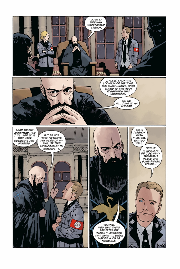 Rasputin's allies pursue their own goals as Professor Bruttenholm parachutes into Nazi territory in search of ''The Master.''