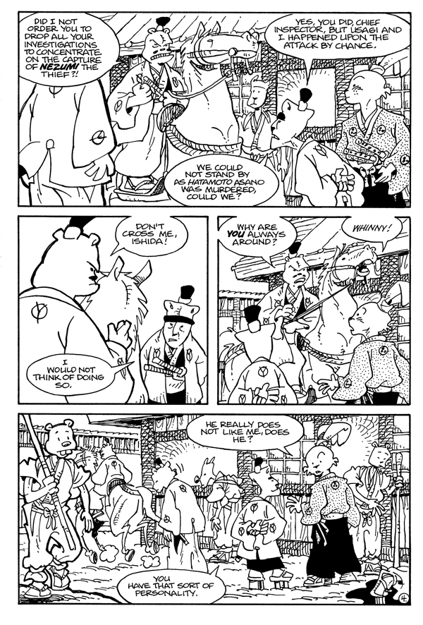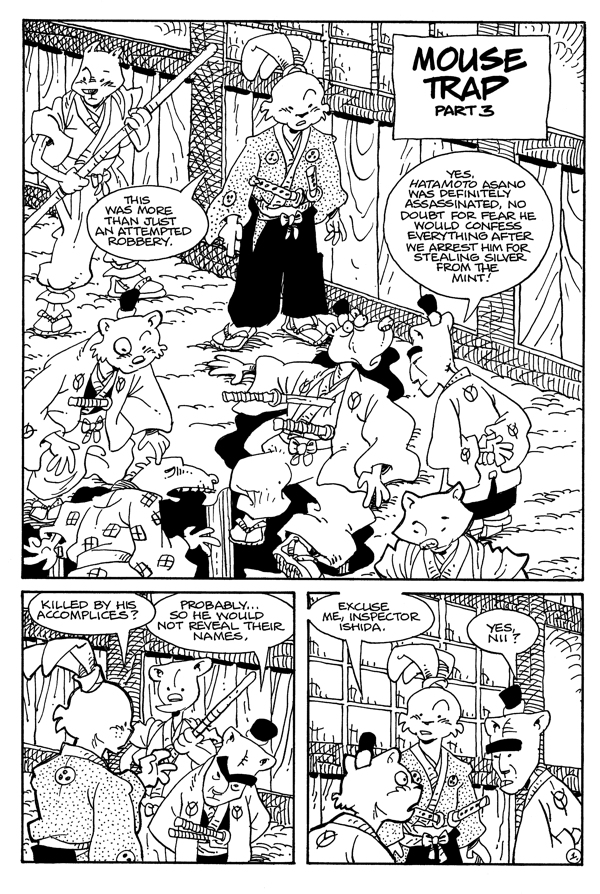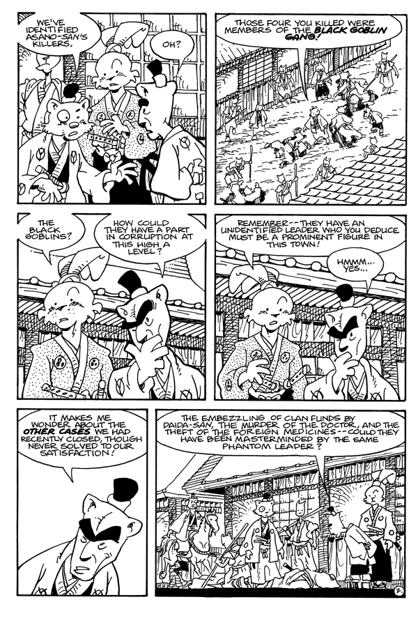 A story of murder, double-crosses, unexpected allies, and the mystery of the one known as ''The Master'' . . . it all ends here! Usagi and Ishida are hot on the trail of the stolen silver when they run into the Black Goblin Gang. Will justice ultimately be served--or is all hope lost for the daring duo?
