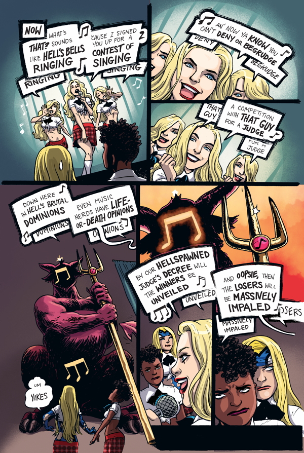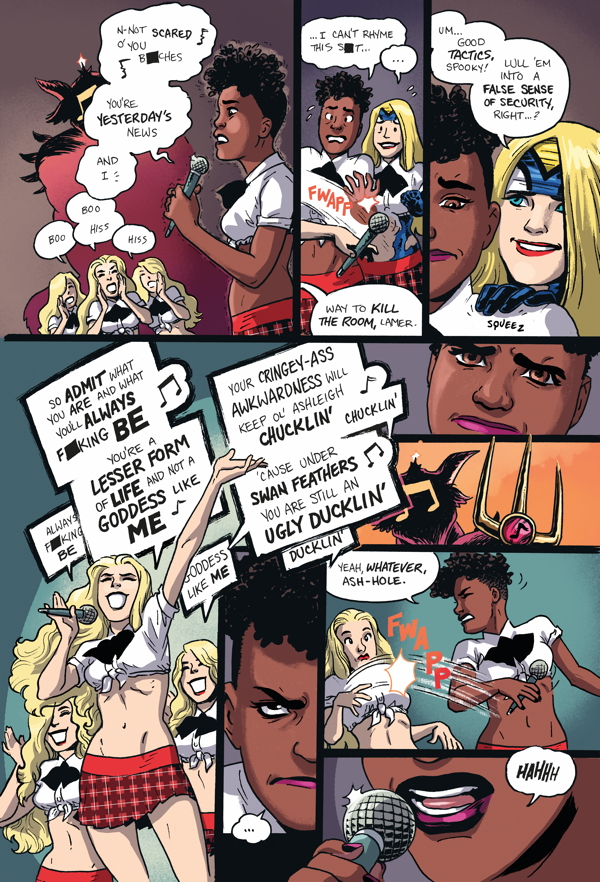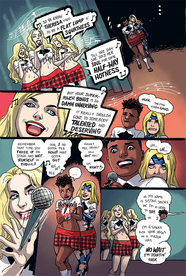 Narrowly escaping death by music class singing competition, Empowered and Sistah Spooky hit a new low in their hellscape ordeal when they stumble into . . . THE LADIES' ROOM! While a trapped Emp drowns in her own tears in a bathroom stall, can Spooky avoid being shattered--literally!--by a Hell-powered magic mirror?
