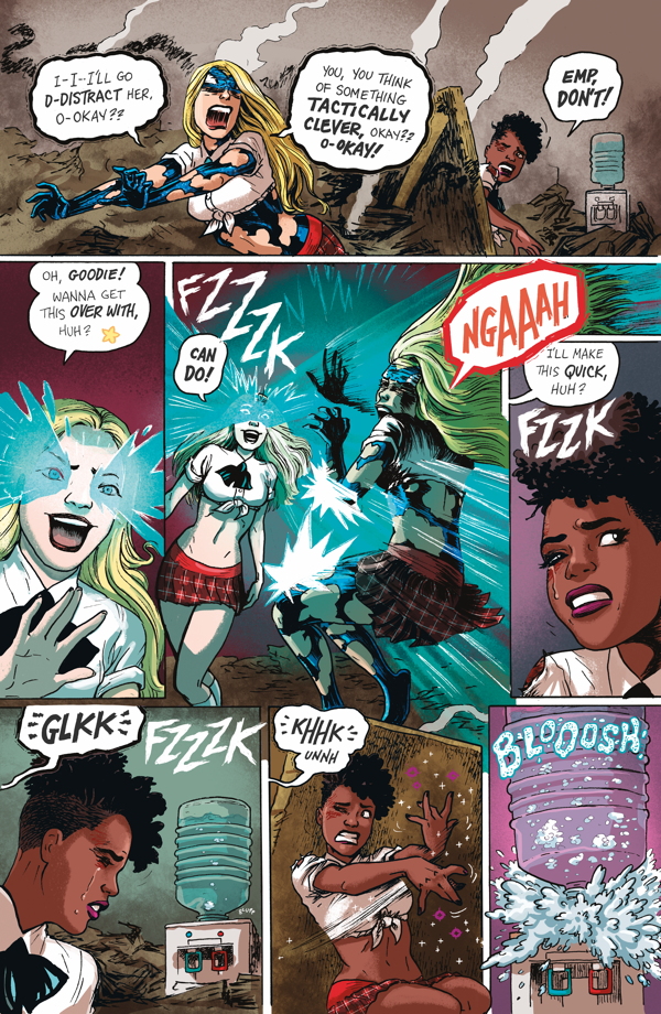 While the embattled Empowered and Sistah Spooky struggle through the high-school hellscape's final, grueling classroom deathtraps, the ruthless ''Game of Blondes'' among Spookys quite literally soulless ex-classmates reaches a crescendo of violence and treachery--and ''levels-up'' the survivors to near-godlike status! Look out, Emp and Spooky! Like, yikes!