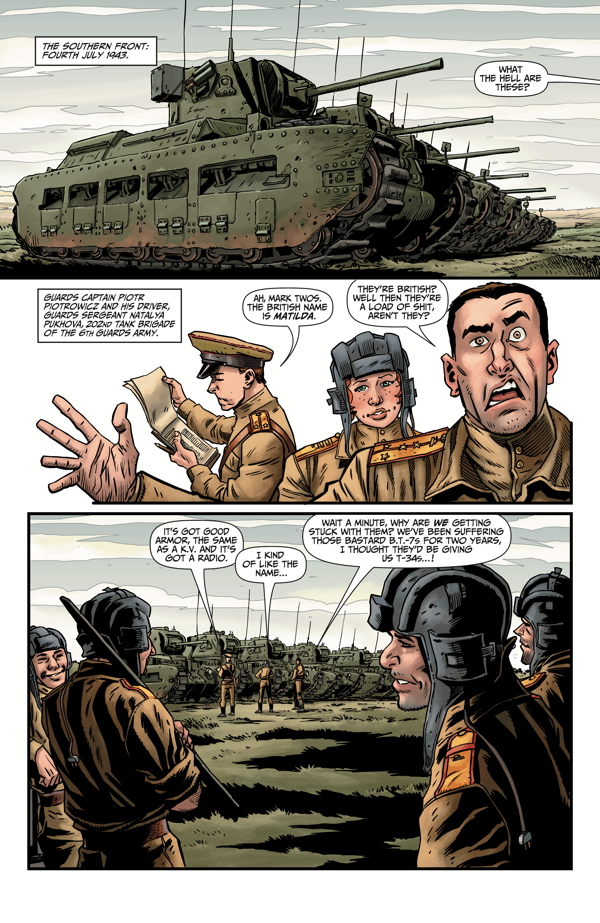 The Eastern Front, 1943: as the cataclysmic Battle of Kursk looms large, Captain Piotr Piotrowicz and his driver, Natalya ''Ginger'' Pulkhova, prepare their unit for action-- equipped with the worst tanks in the Russian inventory. On the opposite side, German tankers Karl Kraft and Freddie Stadler brace for the onslaught--well aware that failure here will put their Soviet enemy on the road to Berlin. Garth Ennis and PJ Holden present a second action-packed story of armored warfare, inspired by the phenomenally popular game World of Tanks.