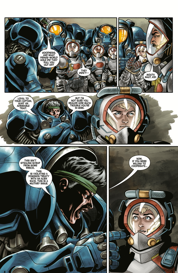 A group of terran space scavengers are ambushed by an invisible, deadly stalker--and then by aggressive Dominion forces out to ruin their salvage operation! Writer Jody Houser (Orphan Black, Faith) and artist Gabriel Guzman (Star Wars, Mass Effect) join forces for an exciting new sci-fi series that expands the universe of Blizzard's hit game.