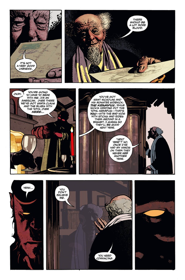 The only thing more exciting than pitting Hellboy against this Satanic spin on Santa is the team-up of Mike Mignola and Adam Hughes.