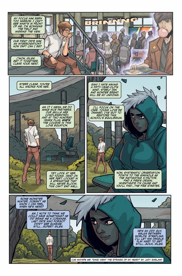 High school life is a rough go for Rupert Giles-as if being a grown man living inside a teenage body wasn't hard enough. Crushing on each other, Giles and his mysterious new friend, Roux, navigate around the bullies in the hallways while they investigate the school-wide threat and missing staff and students--which they are certain is connected to some kind of demon . . .