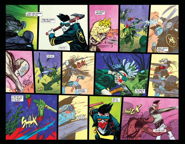 The quest of the ax-swinging wasteland survivor and his crew of rebels careens to an exciting conclusion in a violent final showdown with the mysterious Father and his dooms- day cult. Will Rider find his wife? And if he does, what will be left of the American wasteland they live in?