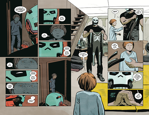 Skulldigger: well-meaning hero or violent murderer? As Skeleton Boy trains with an uncompromising Skulldigger, a hard-nosed detective seeks them out, determined to link the vigilante to the murders that orphaned the boy. But soon super-villain Grimjim's plans come to a head, threatening to throw Spiral City into chaos.