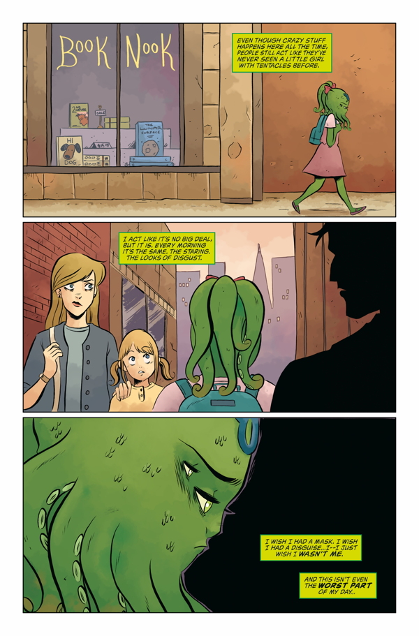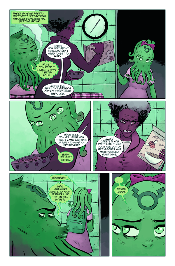 Spawned by the emissary of a Cthulhu god, Cthu-Louise struggles and is teased at school due to her monstrous appearance. Finally fed up with the bullying and abuse, she decides she will do anything to make herself ''normal.''