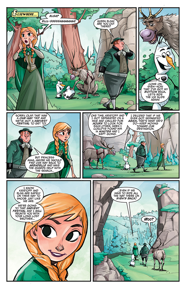 Traveling to the harvest festival, the group find themselves separated after a harrowing accident. Elsa and Kristoff meet a young girl and her family in the woods who may be able to help . . . Meanwhile, Anna, Kai, Sven, and Olaf search a nearby village for the means to get to Snoob and reunite with the rest of the group--and reunite Kai with his long-lost brother!