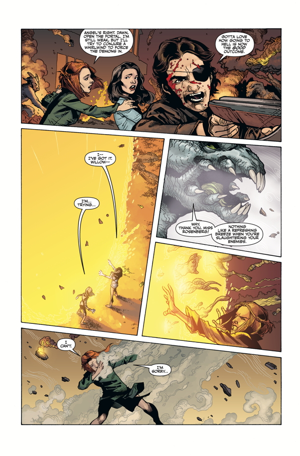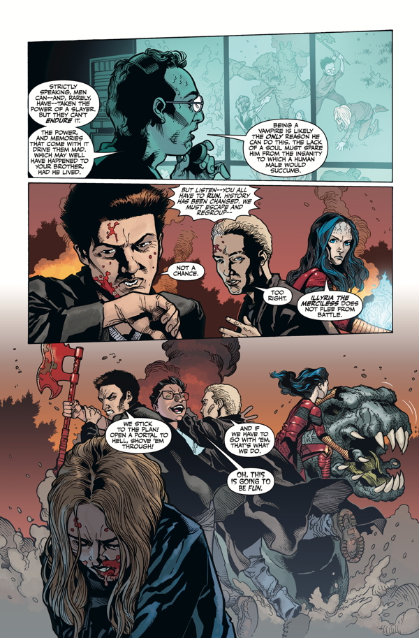 Buffy, Fray, the Scoobies, and the Slayers are in an epic battle against Harth, and his army of baddies. His attempt to steal the power of the Slayers has brought Buffy and her crew to the turning point that they have been trying desperately to avoid. With all other options spent, it is only Buffy and her sacrifice that can save the world . . .