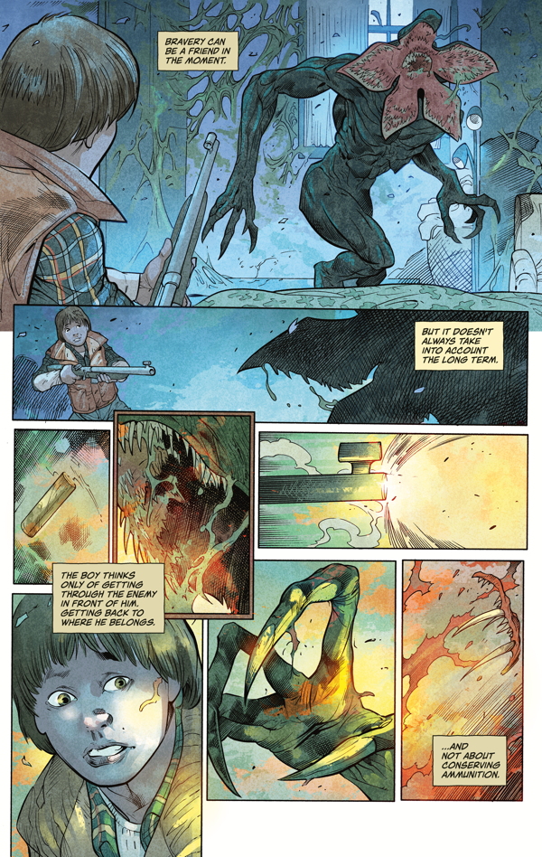 Stuck in the mysterious Upside Down, Will Byers is cold, scared and starving. He uses his last bullet to temporarily drive away the Demogorgon. Drawing on lessons learned from D&D, Will hunts for food and supplies to prepare for whatever lies ahead. After discovering he can affect the lights in his family home, brief excitement turns to terror when he realizes he isnt the only one that wants to break through to the other side.