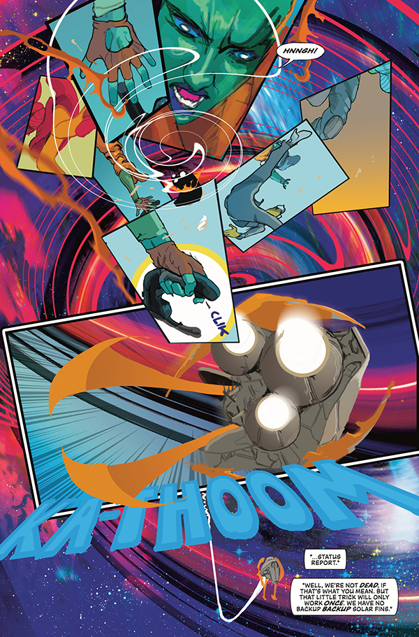 The thrilling conclusion of the first arc! At the height of a mega-battle against Lux's formidable ship, Grix manages to out-maneuver their opponent despite the Sundog's less-than-battle-ready defenses. Will Vess and Grix ultimately get the help they need from Duni? And when faced the unsettling truth, will the public be with them . . . or against them?