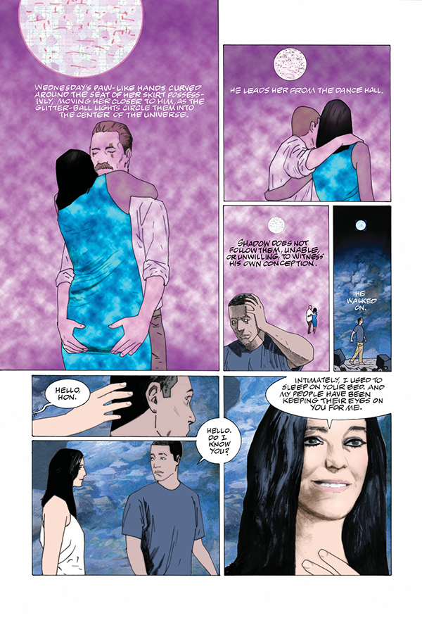 Several of the old gods act as Shadow's guides on a bizarre trip through the Underworld while, at the same time, the old and new gods meet at Rock City for a fight!