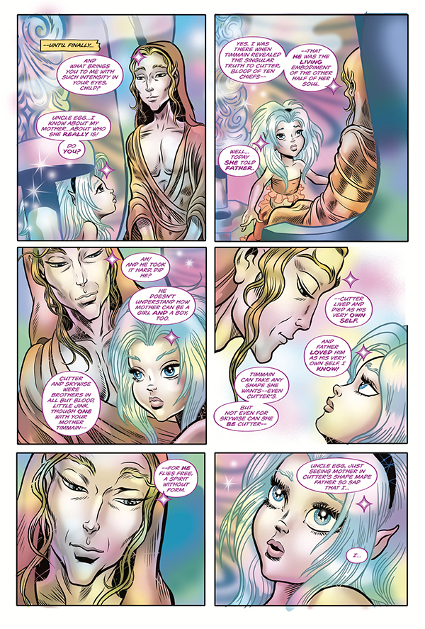 Skywise has always been the companion to the hero, Cutter Kinseeker. But now Cutter is gone, his body part of the reborn Father Tree, his spirit free to roam. Life goes on for the stargazer; he now has a daughter, the amazing and gifted Jink, who lives to see her father happy. But a shocking secret lies concealed beneath the beautiful facade of Skywise's tranquil life. What happens if he learns the one thing that could shatter his--and his loving daughter's - world? How far would he go - how far would they both go--to regain what might be lost?