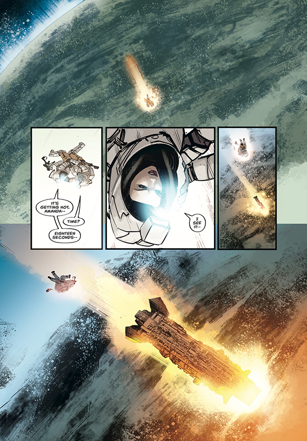 As Amanda Ripley and Zula Hendricks deal with failing pressure suits and an orbital tumble, a Weyland-Yutani experiment unfolds on the surface of the moon below. A thousand kidnapped colonists' lives hang in the balance.