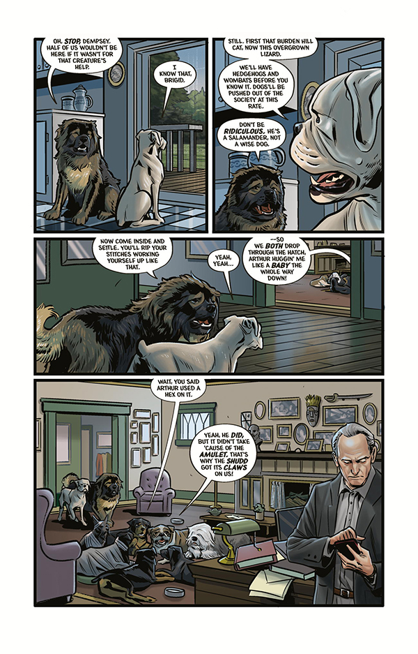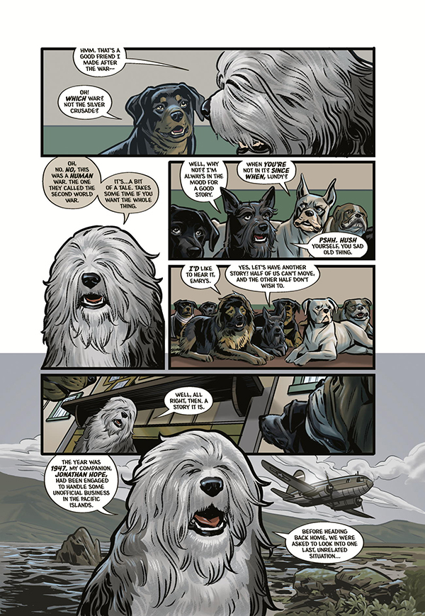 An elder member of the occult-battling pack of Wise Dogs recalls a harrowing mission--in U.S-occupied Japan after World War II, a mysterious curse creates an army of crawling, disembodied heads which threatens to overwhelm the region. Emrys and a team of canine companions attempt to solve the mystery, bringing them into conflict with shape-changing tanuki, evil oni, and a horde of vengeful demons.