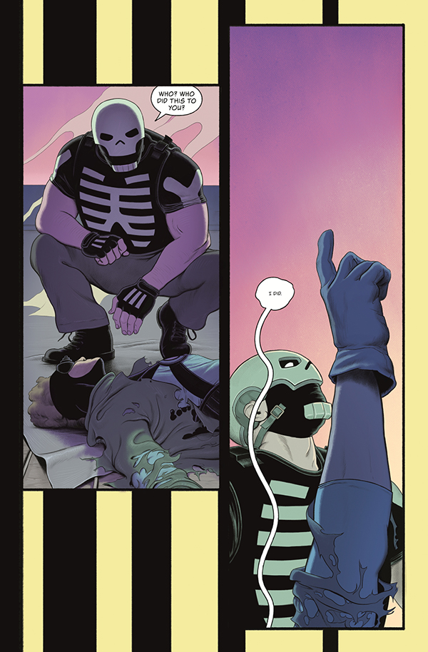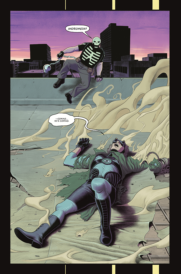 A multidimensional nightmare continues to wreck-havoc on Spiral City as bizarre versions of Black Hammer heroes come face-to-face with the brutal vigilante known as the Skulldigger.