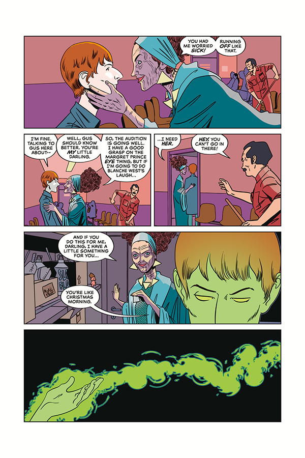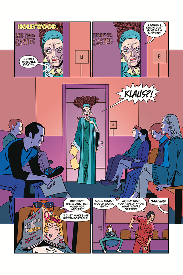 Klaus's contact with the dead comes in handy when his former movie star friend needs help wowing a casting director. Beneath Hollywood, we catch up with Shivers, the vampire-chimp drug lord, in his vampire amusement park, where he continues his search for the Umbrella Brat who stole his stash, while Klaus's aging paramour distracts him with booze . . . and relish.