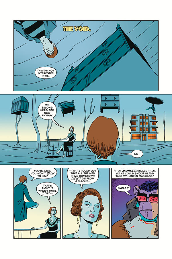 Klaus travels into the Void in search of the dead wife of the vampire chimp boss. While he's there, Klaus's author friend provides dangerous insight about want-to-be-starlet, Vivian. Vivian bombs a rehearsal, but it's the cast and crew that really suffer.