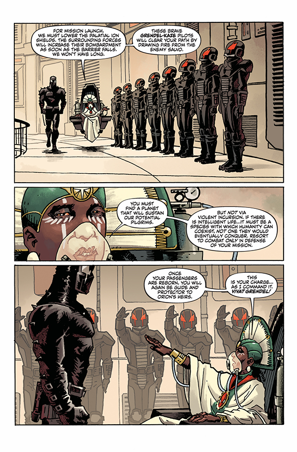 Grendel Prime searches the stars for a new home for mankind, and Matt Wagner returns to his darkest creation! As civilization comes to an end on Earth, the final Grendel Khan gives Grendel Prime a new directive: Find a perfect planet to be the new home for the human race. But will the deadly and relentless paladin ultimately save humanity . . . or destroy it?