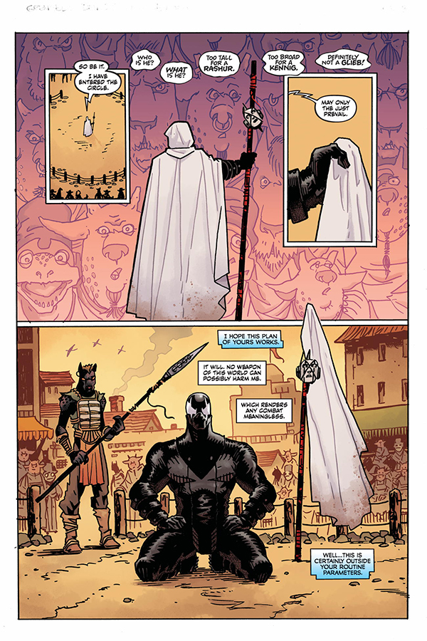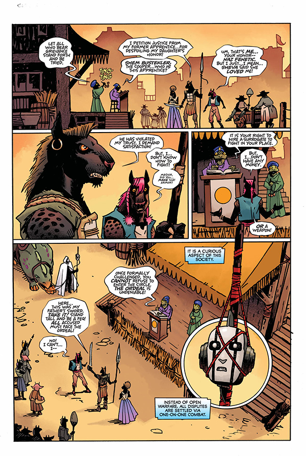 Decades of searching have finally led Grendel Prime and Sigma-Seven to the planet Bojan Feq, which has an environment similar to earth's and where civilization exists at medieval-level technology and is shared between three different intelligent species. But the entire culture operates under a feudal system and centers around a ritualistic form of combat known as "the Ordeal," which Grendel Prime must navigate through.