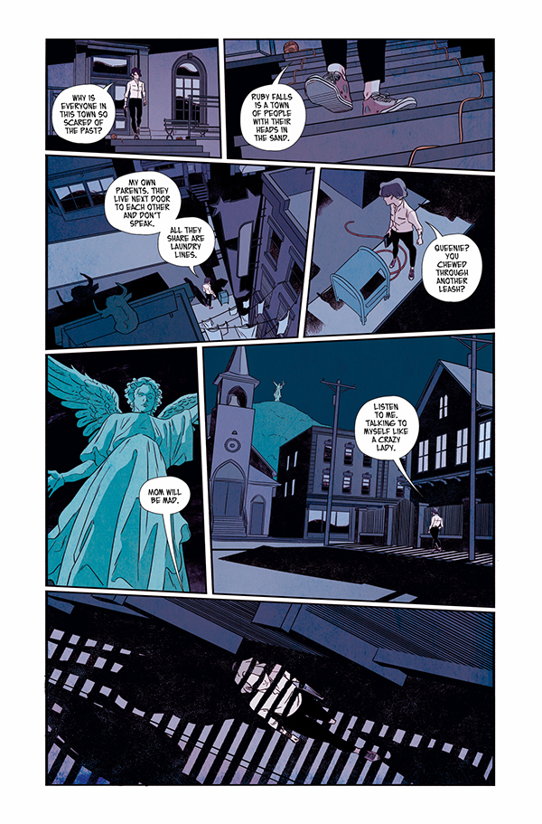 From Ann Nocenti (The Seeds, Daredevil) and rising talent Flavia Biondi (Italian artist of La Generazione making her American comics debut) comes Ruby Falls: a neo-noir tale of love, memory, and murder mysteriously woven through three generations of women, and hinging on their individual, intertwined fights for freedom.