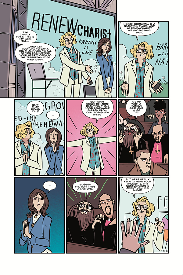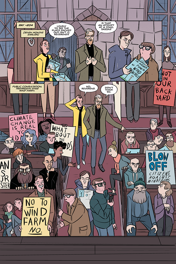 Renewable energy, imperiled birds, and a crowd of NIMBYs converge at the heart of this parish's latest crisis as curate Billie and Church of Satan priestess Maggie battle with divine windmills and their own internal dilemmas.