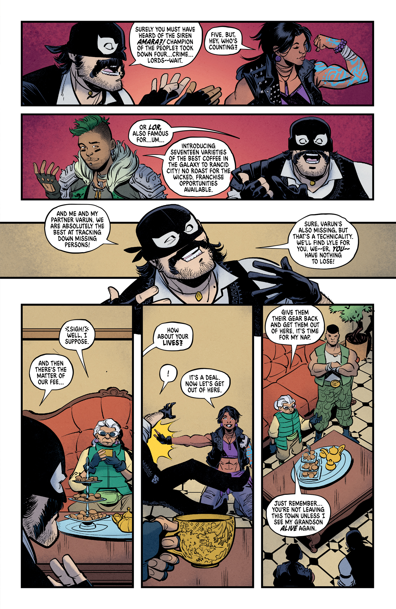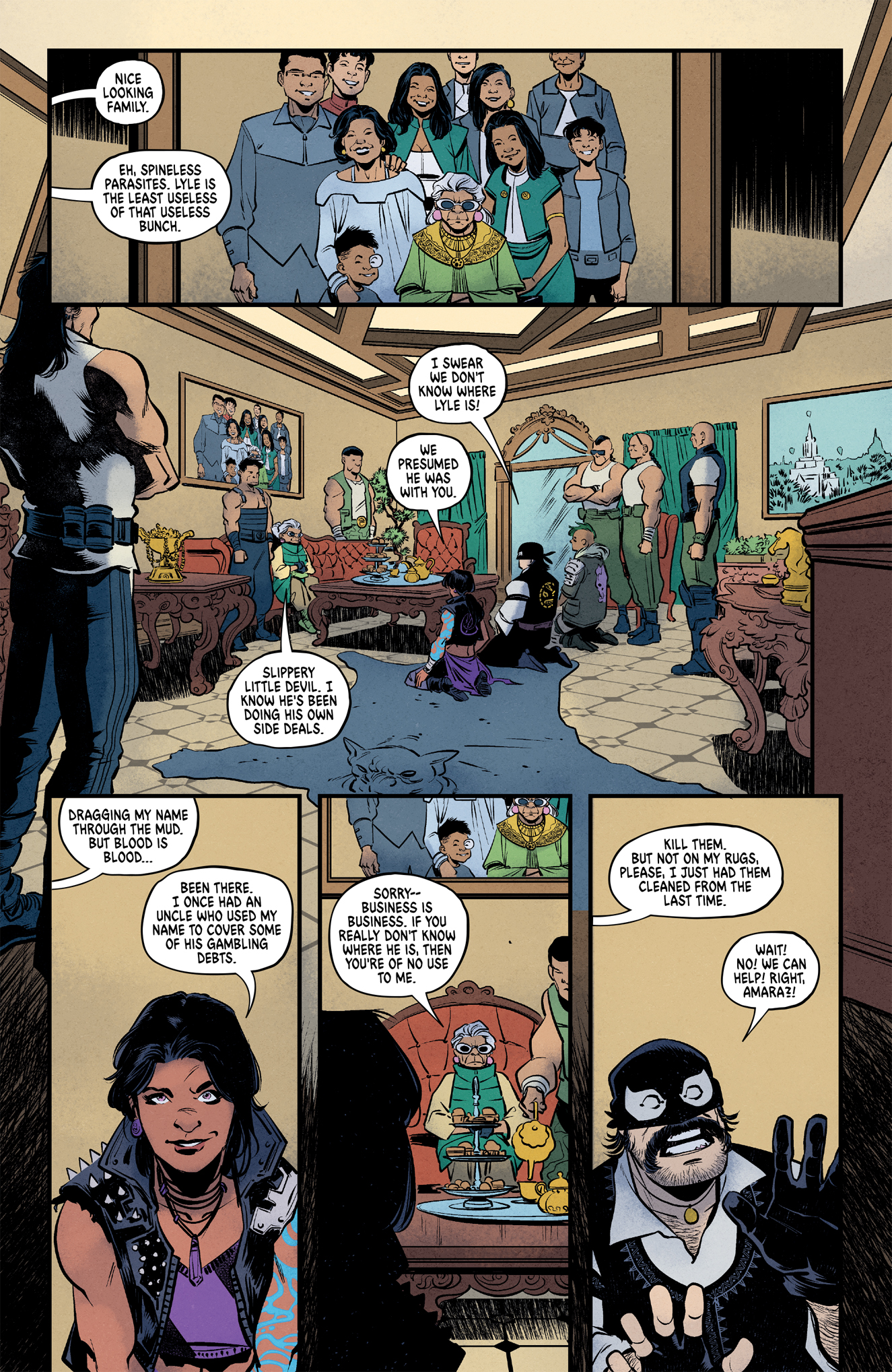 It didn’t take long for trouble to find Amara and company as they searched for Lyle. Disarmed by Auntie Teo’s goons, with Varun nowhere to be seen, Amara, Lor, and Ziff will need to talk fast if they want to get out of this alive.