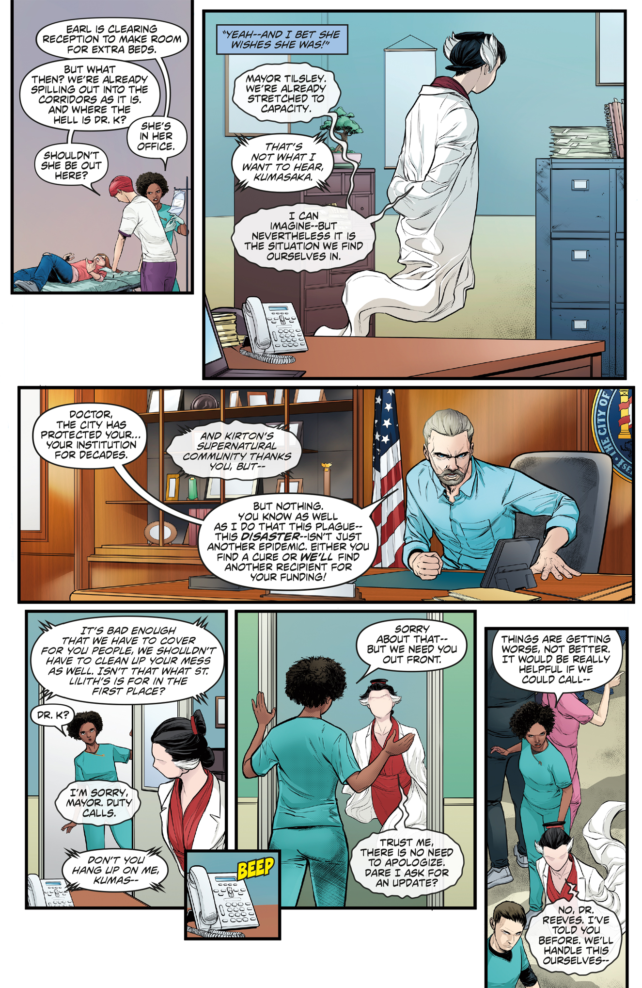 A supernatural epidemic is sweeping the city of Kirton--sparing no one, human or not. The screams of the infected wail through St. Lilith's with no cure in sight. Patients are spilling into the hallways and being turned away. Dr. Nat Reeves is doing all she can, but she's just one person. Saving the city may require drastic measures . . .