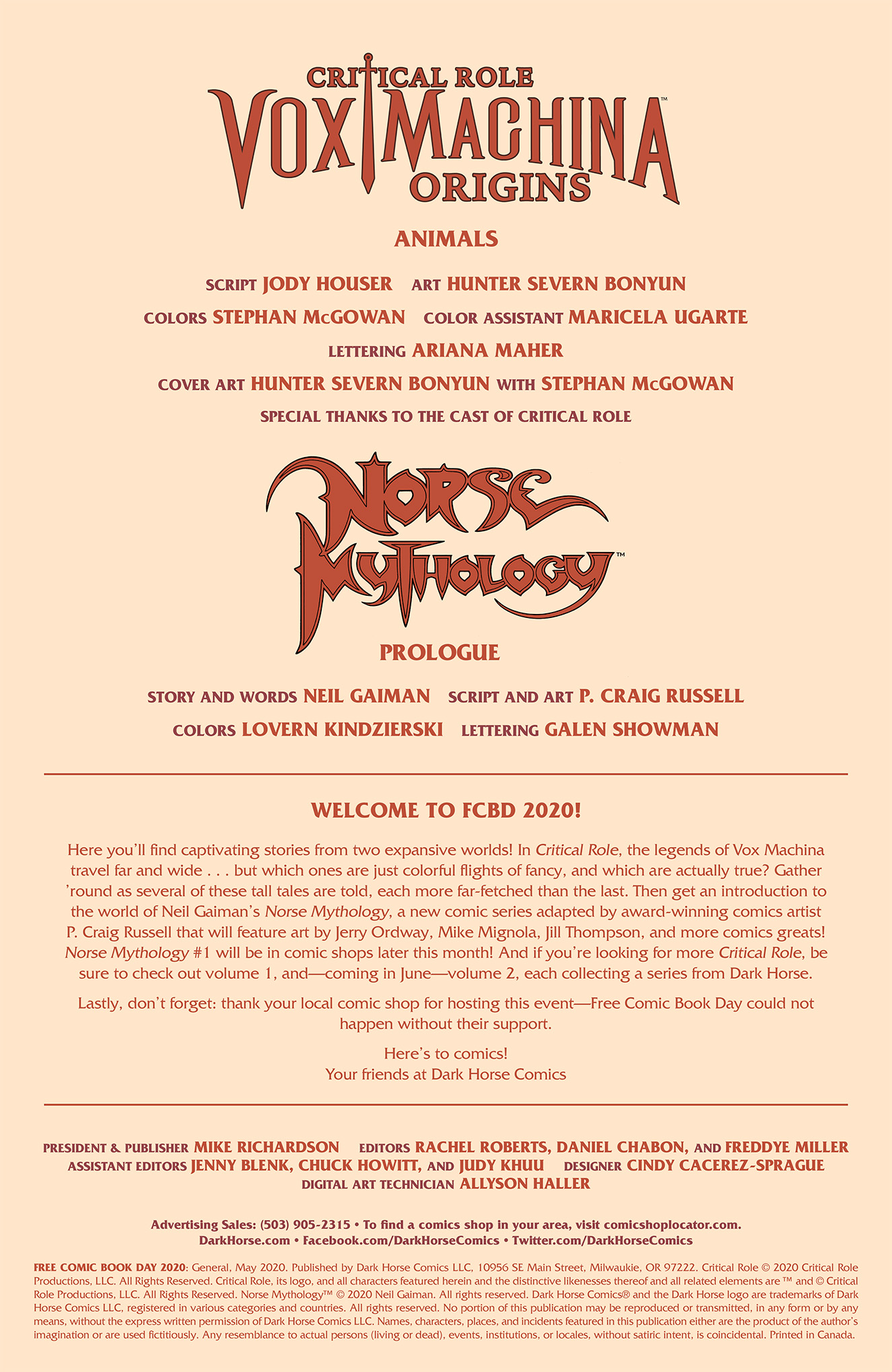 Free Comic Book Day 2020 (General) Critical Role/Norse Mythology