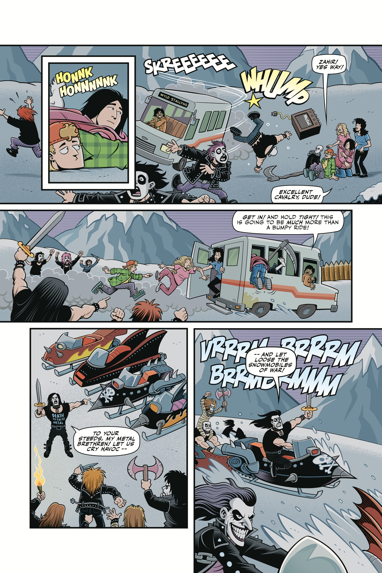 With the launch of their world music tour in chaos, Bill and Ted manage to escape a rioting death metal festival only to be marked for death by the insane leader of an evil metal band. With thousands of evil metal fans on a wild hunt for our heroes, can the Wyld Stallyns survive long enough to write the One Song on tour and save the future?!