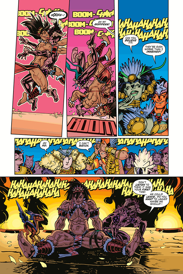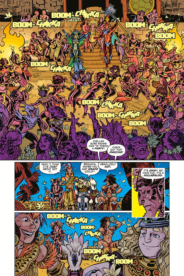 The jungle fantasy romantic comedy continues! But can Bronwyn and Graow stop fighting dinosaurs, birdpeople, an evil wizard, and each other long enough to just shut up and kiss already!? From Aubrey Sitterson (No One Left to Fight, The Comic Book Story of Professional Wrestling) and Jed Dougherty (Worlds' Finest, Harley Quinn).