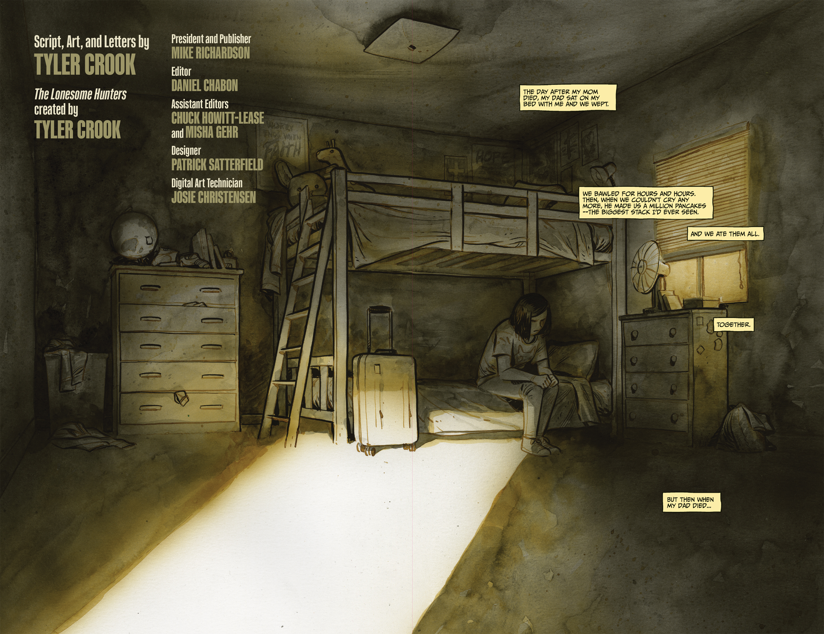 "The Lonesome Hunters is everything I love about comics. Tyler Crook had created a mesmerizing new world, a compelling mythology and brought it all to life with his jaw dropping painted art. I loved it!"-Jeff Lemire