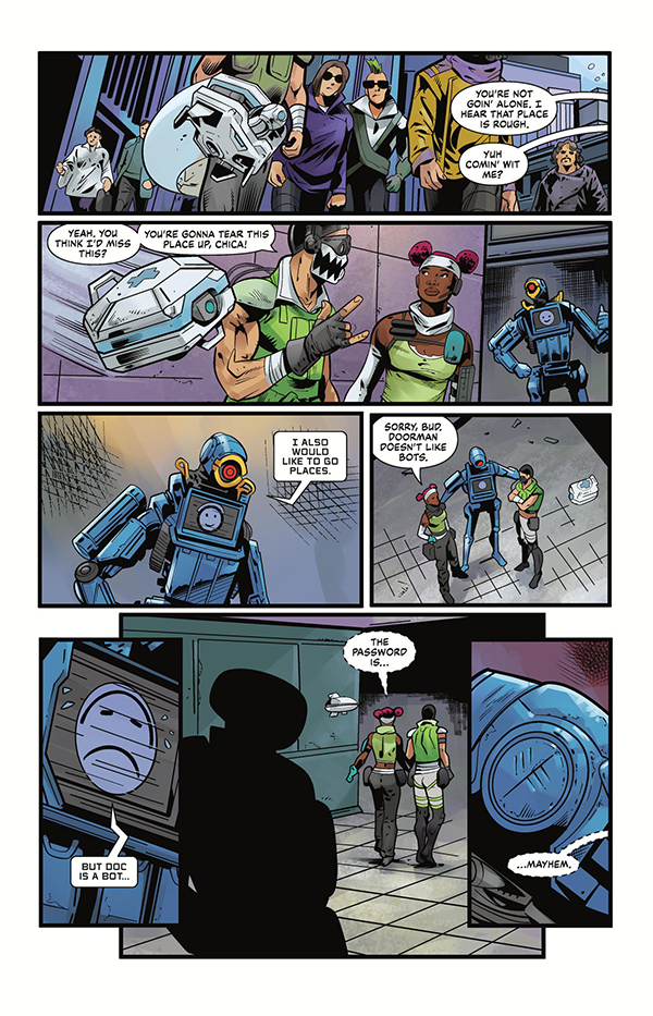 Three Legends walk out of the arena and into another night full of mayhem and partying. Surely, some days on the outlaw-filled planet of Solace must be safe . . . right? Unfortunately for our heroes, there are assassins, robot-scrappers, and worse prowling the neon lit streets. They will need to work together if they want to survive.
